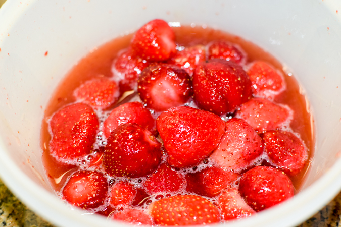 - Place strawberries, honey and water in bowl. Allow frozen strawberries to thaw in honey water.